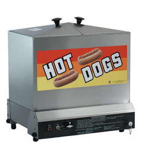 SUPER STEAMIN' DEMON HOT DOG - 8012 - A hot dog steamer with 50% more capacity. 19" W x 15 1/2" D x 24" H. 160-180 hot dog capacity and 60-80 bun capacity.